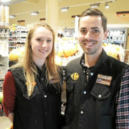 The store also offers a variety of beverages, including natural mineral water and grape juice. For those looking for a quick meal, the Repas Express section offers salads with pasta, cucumber, salmon, and skyr. The Cave à Bières section showcases different beer options, perfect for relaxing after a long day.